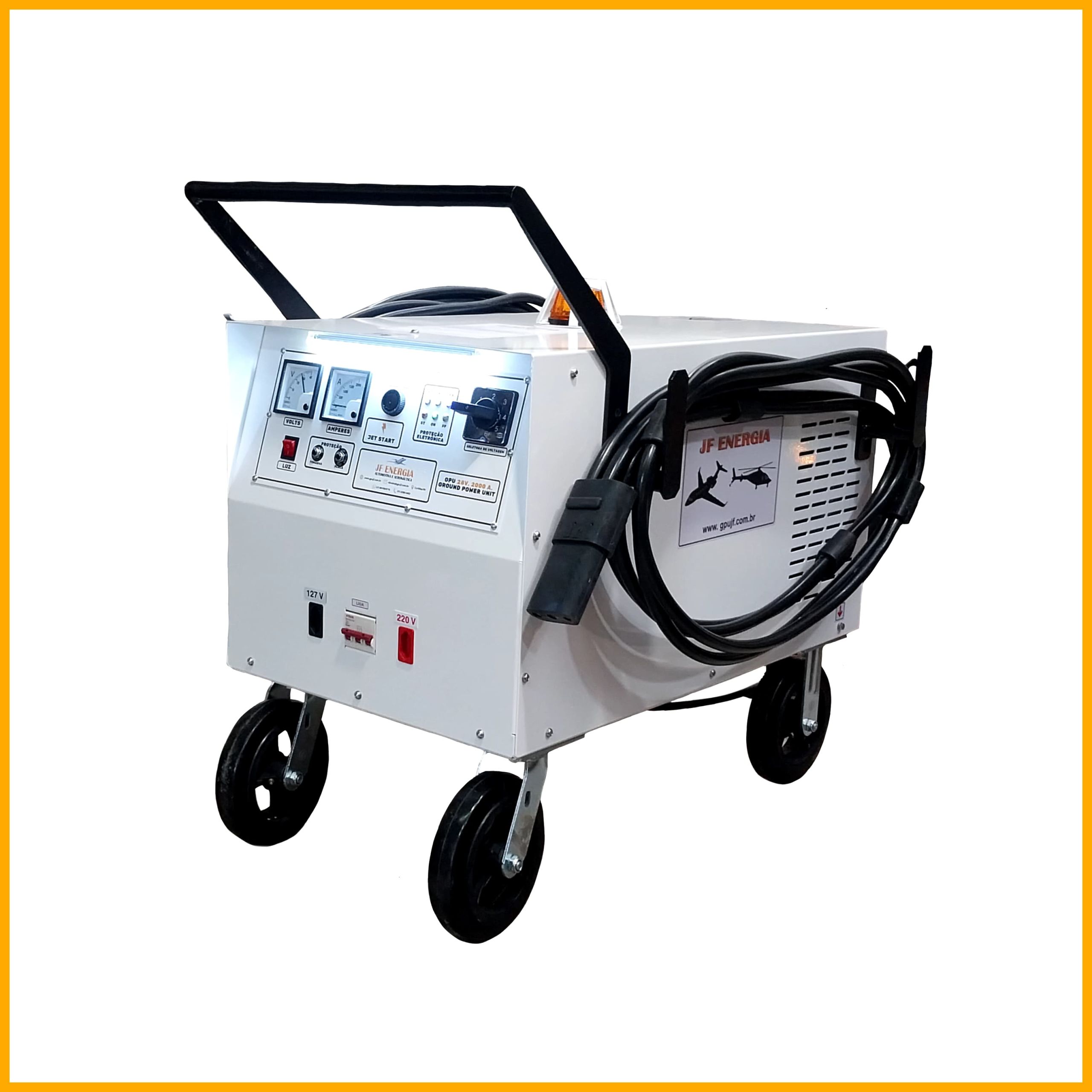 O Jet Start 2000 é um Gpu Fonte externa 28v. elétrica de grande porte, capaz de atender as aeronaves mais exigentes com relação a variação de voltagem,possui 7 regulagens diferentes com variação de 1 volts. Indicado para todo tipo de aeronave que funcione com 28v. e até 2000cca de pico,incluindo o uso do ar condicionado.